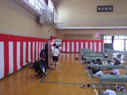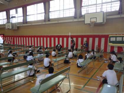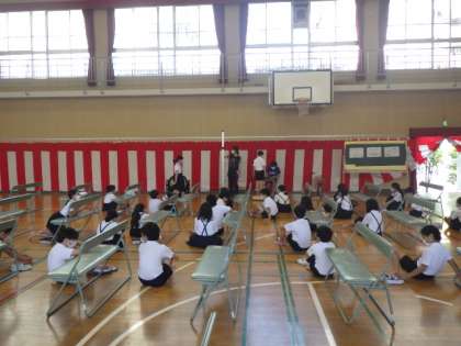 講堂を使い、発育測定が行われました。
