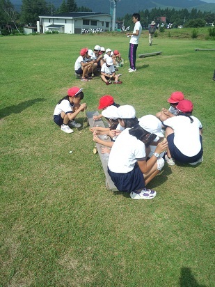最後の活動になりました。林間の思い出を自然の木などを使って作品を作ります。