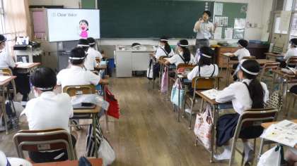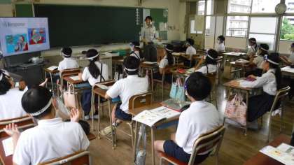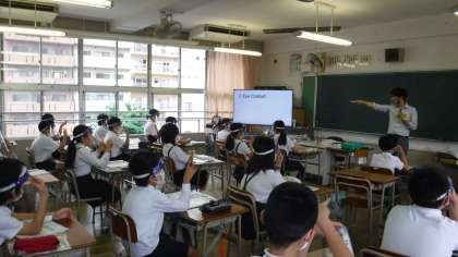 花乃井中学校の英語教諭である岩本先生と一緒に外国語の勉強です。