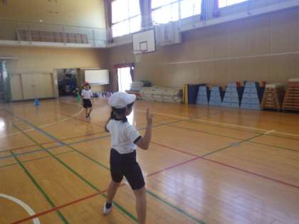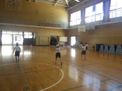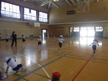 スキップやカニ歩きなどいろいろな走り方で走り、体を動かしました。