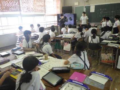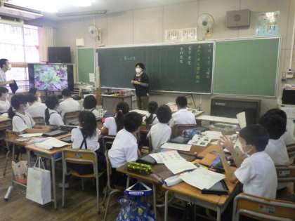 明治小学校では阿波座南公園のビオトープを活用し、4年生において理科と総合の学習の時間を使いビオトープの学習をします。