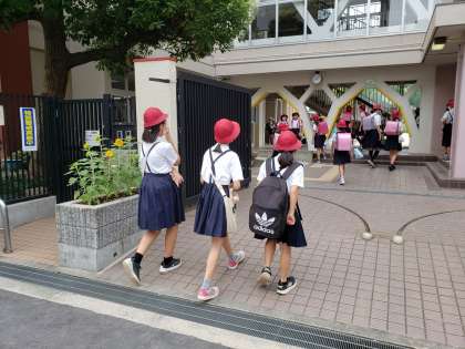 正門前のミニヒマワリが花を開き、子どもたちの1学期の頑張りをねぎらっているようです。8月の1週目まで延長した1学期の締めくくり、終業式の朝を迎えました。子どもたちも充実感をもった明るい顔つきで登校していました。