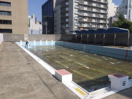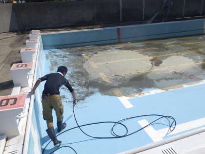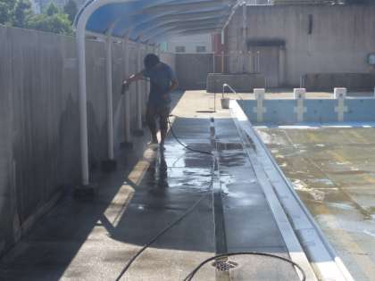 業者によるプール清掃が行われました。一年間の汚れをしっかりと落としています。