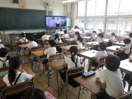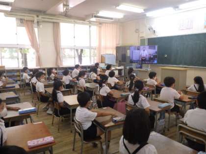 始業式はTeamsをつかいオンラインで各教室をつなぎおこないました。