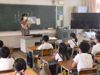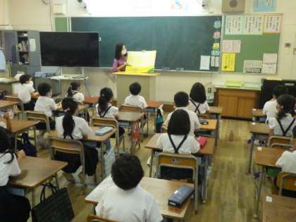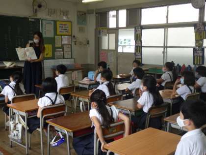 地域で活動しているぶっくらぶのかたに来ていただき、今週は各学年1組と1年3組でおこないました。