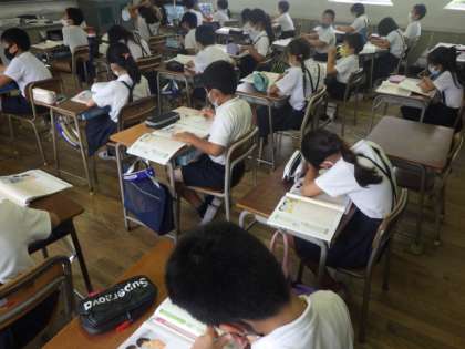 授業で学習したことをもとに、自分の考えを道徳ノートに書き込みました。