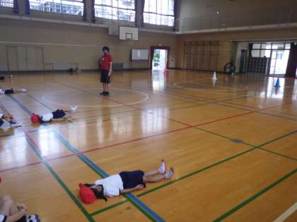 体操のインストラクターの先生に来てもらい、体育の学習をしました。