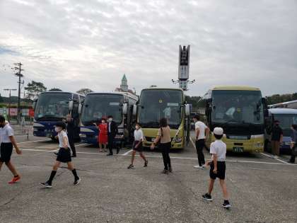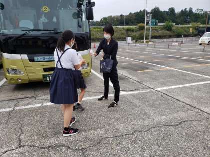 バス乗車時には手指消毒をしました。