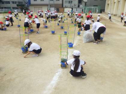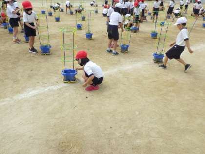 1年生が育てていたアサガオも花が咲き種が取れました。