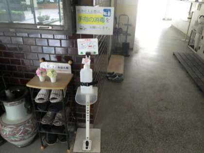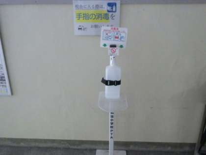 基本的には玄関に設置し、来客者に対して校舎に入る際は消毒をお願いしています。