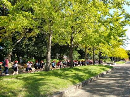 午前10時10分 大泉緑地公園に入りました。イチョウの葉が少し黄色に色づいています。
