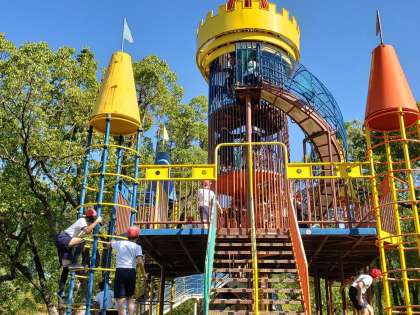 わんぱくランドへと活動場所を移動して、約20分間遊具での遊びです。