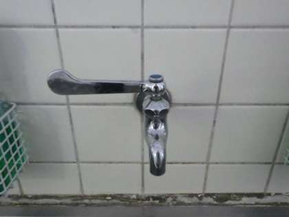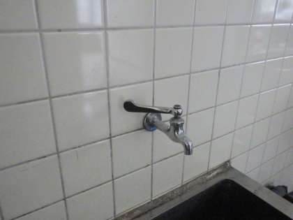 校内の水道蛇口の一部を回転式からレバー式に交換しました。