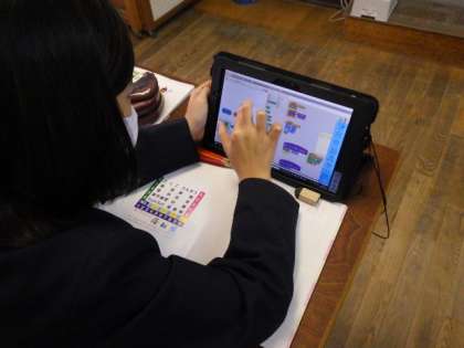 正三角形をかくプログラミングについて、試行錯誤をすることをとおして、筋道を立てて考えていました。