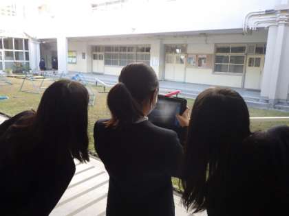 タブレットを使って見え方を確認し、絵にしたときのイメージを膨らませました。