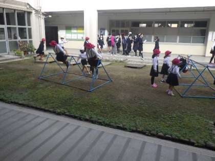 職員室前のみどりの広場では、休み時間、みんな元気に遊んでいます。