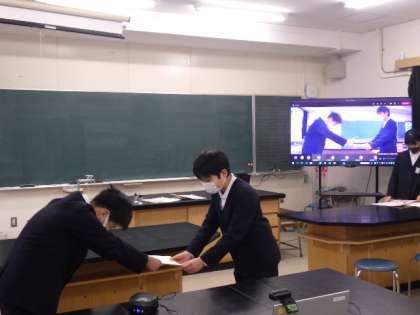 校長先生からは人気漫画「鬼滅の刃」から「人に聞く前に自分で考え、すぐ実行する」ことのお話でした。