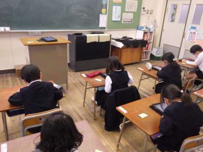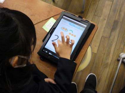 1年生も少しずつICT機器に慣れていくため、タブレットを使った学習を進めています。