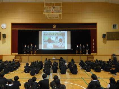 児童集会では、「パソコンクラブ」の紹介がありました。