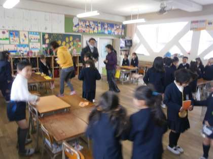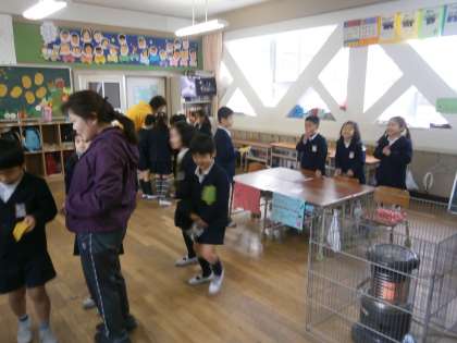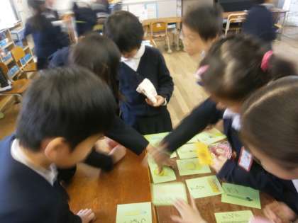 それぞれの班毎に分かれて、魚屋さん、文房具屋さん、