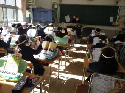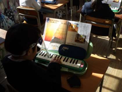 鍵盤ハーモニカを使って子ぎつね練習しました。