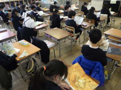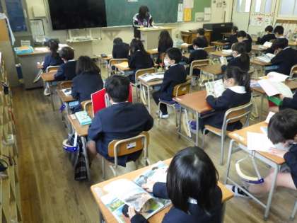 毎週水曜日の朝は本に親しむ時間となっています。