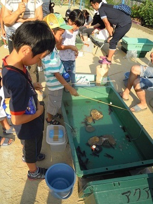 どじょうすくい、ザリガニつり、スマートボール、ビン立て、わたがし……など、たくさんの夜店で盛り上がりました。