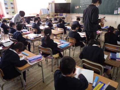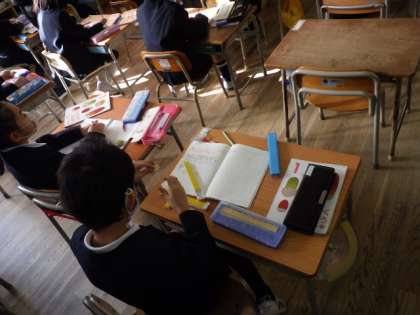 ブロックや図、絵を使って一人分の数を求める勉強をしました。