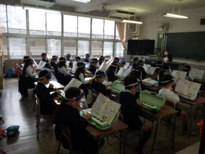 鍵盤ハーモニカの学習です。 きれいな音色が響いています。