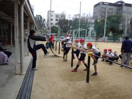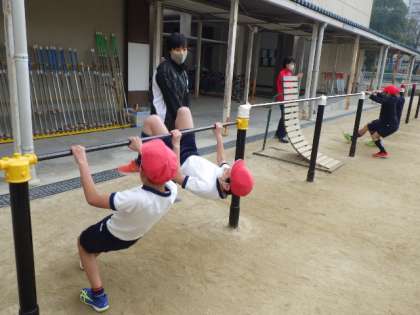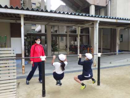 インストラクターの先生に来ていただき、鉄棒の授業を行いました。