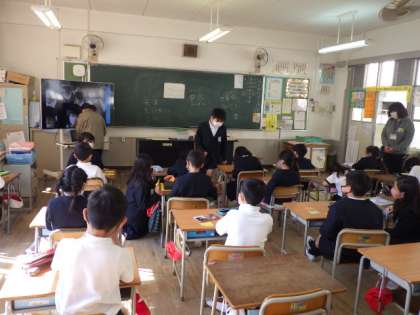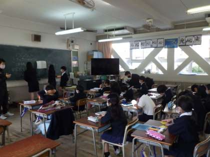 ファミリー班に分かれて在校生が一年間お世話になった6年生に向けてメッセージカードを制作しました。