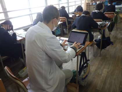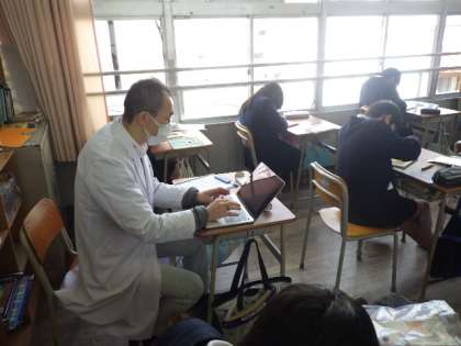 薬剤師の先生に来ていただき、教室の空気検査を実施しています。