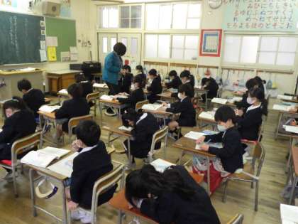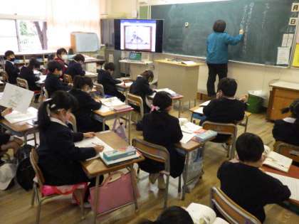 物語を読みながら、その場面の主人公スイミーの気持ちについて考えています。