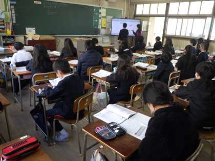 見取り図の書き方について、自分の考えを前で説明しています。