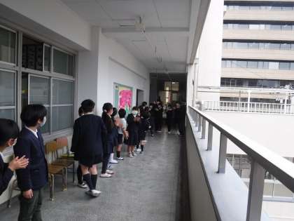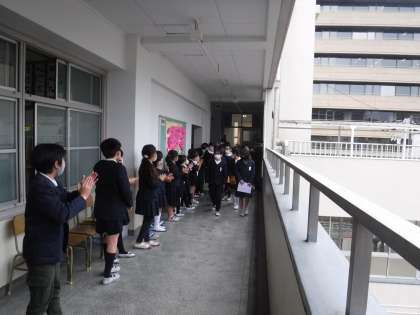 校舎中を6年生が回り、在校生みんなで送り出しました。