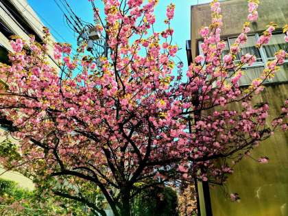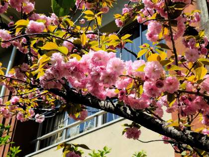 今年はソメイヨシノの桜の開花が例年より早く、入学式の時には散ってしまっていました。その分、私たちが頑張りますと宣言してくれているかのような入学式の日のヤエザクラの咲きっぷりです。ありがたいことです。