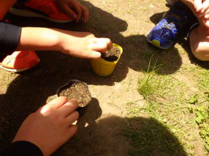 へちまとひょうたんの種を植えました。