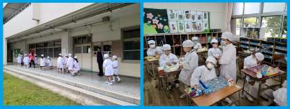 これからの1年生の成長で、いつしか給食当番としての活動を全てにわたってできるようになることでしょう。その成長が今から楽しみです。