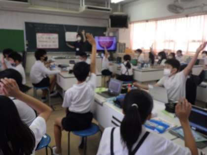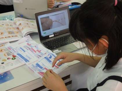 1人1台端末を使って教科書のQRコードを読み込んだ動画を参考にしながら、
