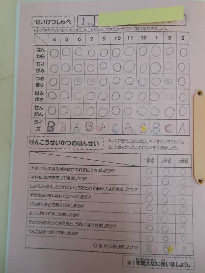 今学期最後の「せいけつ調べ」を全学年行いました。