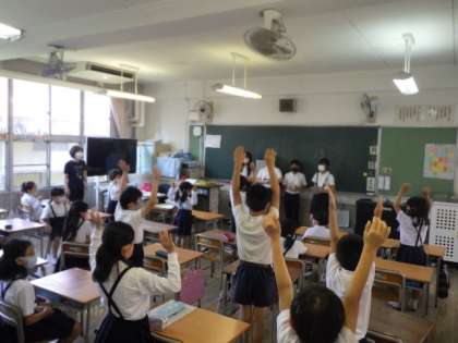 各教室に入る前と自分の教室に戻る前には手洗いをおこないます。