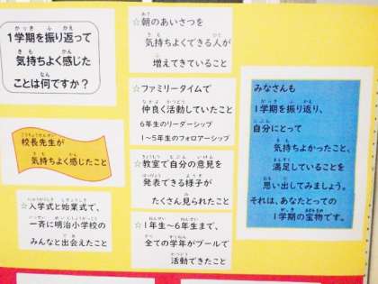 1.入学式と始業式で、一斉に明治小学校のみんなに出会えたこと。