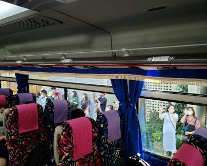 見送りの皆さんに手を振り、いってきます!と爽やかにあいさつをしながらバスは出発しました。