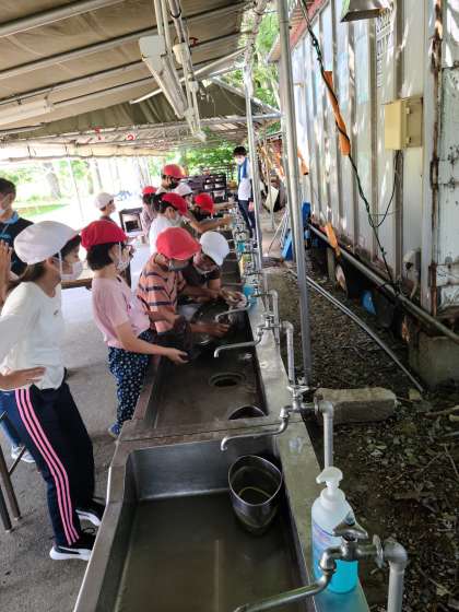 野外調理、最後の最後まで力を緩めず、時間をかけて努力する班もありました。