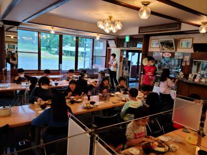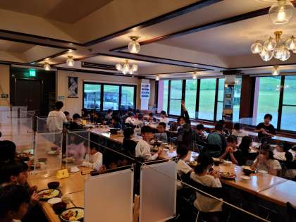みんなでいただきますをして、夜のキャンプファイヤーに備え、モリモリ食べましょう。