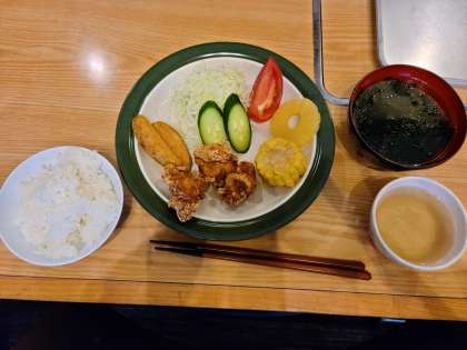 2日目の夕食です。メインは子どもたちの大好物、鶏の唐揚げです。