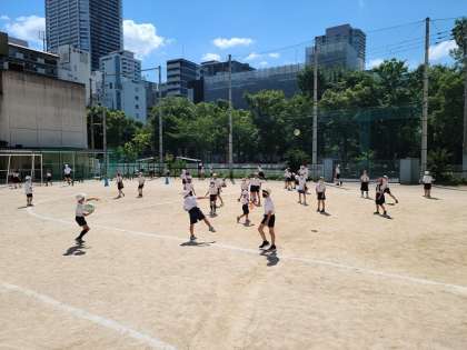 午前中で最も長い休み時間が、2時間目終了後の休み時間です。多くの子どもたちが運動場に出てきて遊んでいます。今日は、暑さ指数も低めで、熱中症の心配は少なく遊ぶことができます。