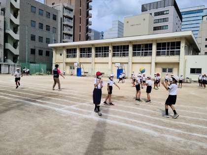 担任の先生も参加してドッジボールに興じる子どもたち、鉄棒やジャングルジムなどの固定遊具で遊ぶ子どもたち、鬼ごっこで駆け回る子どもたちなど、元気いっぱいです。