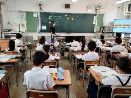 2年生がかけ算の学習をしていました。いくつかの いくつ分を求めるにはかけ算の式でで表すことを学習し、式をブロックを並べて表していました。