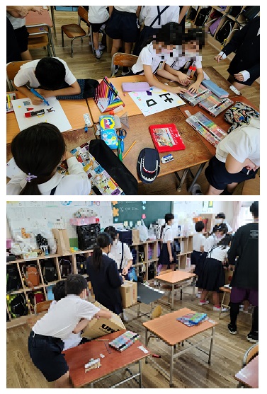 異学年で集まるファミリー班で遊びのお店を企画し楽しむ子どもたちのまつりです。今日はこの日まで6年生で企画し、あたためてきた店の案をファミリー班の場で提案し、役割分担や店の開店に必要なグッズを製作し始める初日です。